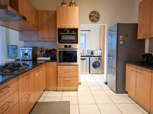 Discover this modern 3-bedroom, 2-bathroom home available for rent in the sought-after Wapadrand area of Pretoria. This single-story residence immediately impresses with its neutral exterior, paved driveway, and double garage, complemented by manicured front landscaping and a secure entrance gate. Inside, the inviting interior boasts neutral tiled flooring and light-colored walls, creating a versatile aesthetic throughout. The open-plan design seamlessly connects the living and dining areas, enhanced by ample natural light and recessed ceiling lights. The well-equipped kitchen features light wooden cabinetry, dark granite countertops, a gas hob and built-in oven. An adjacent scullerylaundry area provides additional convenience with a sink, counter space, and provisions for a washing machine and dishwasher.