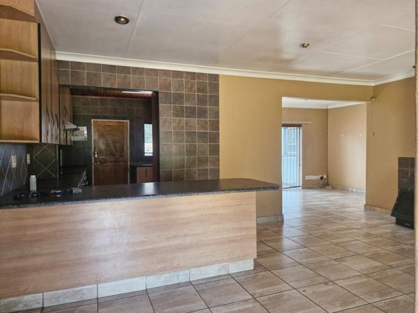 The kitchen offers ample cupboard space and flows seamlessly into the dining and living area. This area offers fireplace for the cold winters.