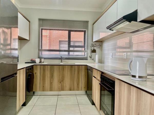This spacious 3-bedroom apartment boasts a modern, open-plan design that''s perfect for families, professionals, or anyone who appreciates effortless living. Step inside to a bright and airy living area featuring neutral tones, sleek tiled flooring throughout, and abundant natural light streaming in from large windows draped with elegant sheer curtains. The lounge is comfortably furnished with a plush dark gray sectional sofa, a stylish wooden coffee table, and a flat-screen TV mounted on a contemporary entertainment unitideal for relaxing evenings or entertaining guests. Adjacent is the dining space, complete with a sturdy wooden table seating six on woven rattan chairs, creating a warm hub for meals and gatherings.