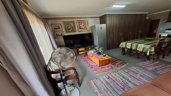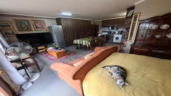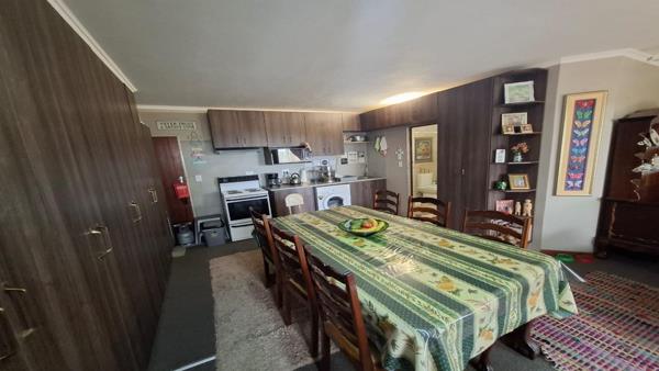 The property offers a lounge, Kitchenette and 1 Bedroom set in an open plan. The Kitchen offer lots of built-in cupboards with an electric stove and oven and melamine counter tops.