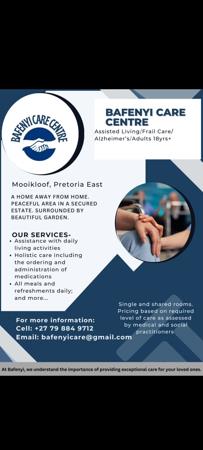 Ideally located in the AREA OF MOOIKLOOF IN PRETORIA EAST. The facility is in close proximity to hospitals in the area which provides easy access from anywhere in PRETORIA. In our newly renovated and private healthcare facility, IT IS A HOME AWAY FROM HOME. Peaceful area in a secured Estate. Surrounded by beautiful garden