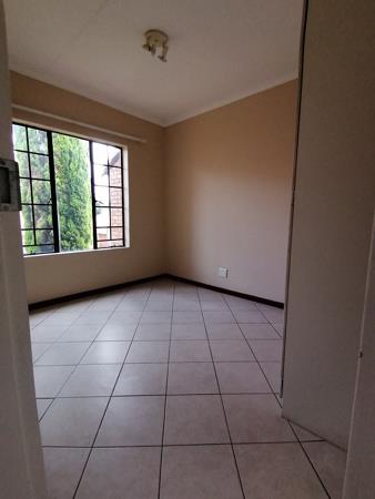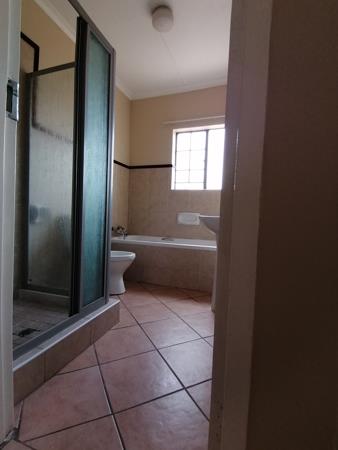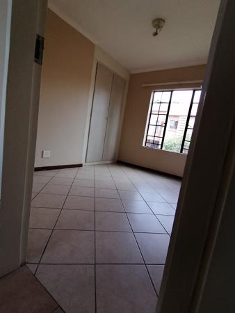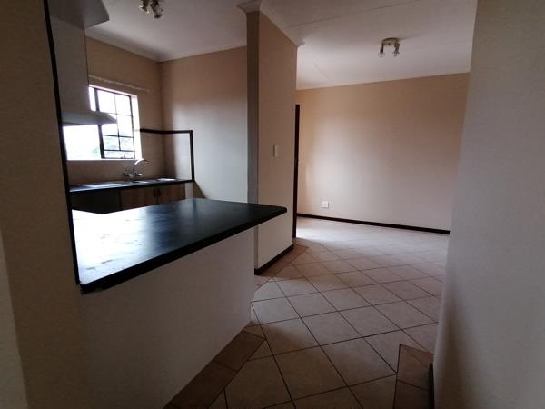 Two Bedroom unit on the First Floor in the 24hr security Mooikloof Estate in Pretoria East. This two bedroom unit comes with, one full bathroom, open plan kitchen and living area, balcony and a single garage. The bathroom consist of a shower, bath, toilet and basin. All bedrooms with built in cupboards. Kitchen has space for two electrical appliances under counter. The Estate has a clubhouse, swimming pool, tennis court, basketball court, squash court and jungle gym area. Enjoy a tranquil, healthy and family oriented atmosphere, while being at close proximity to a main road, hospitals, schools and shopping malls.