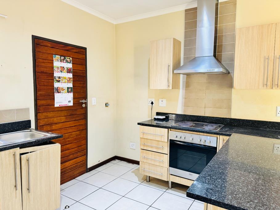 Discover comfortable living in this inviting 3-bedroom, 2-bathroom home available for rent in the sought-after Mooikloof Ridge estate, Pretoria. This residence offers a practical layout designed for modern living. The well-appointed kitchen features contemporary light wood-look cabinetry, dark granite-style countertops, a built-in oven, hob, and extractor fan, complemented by a double sink and ample preparation space. Tiled flooring extends throughout the home, ensuring durability and easy maintenance. Each of the three bedrooms provides comfortable accommodation, with one featuring a spacious built-in wooden wardrobe, while the two bathrooms include essential fixtures, with one being an en-suite for added privacy.