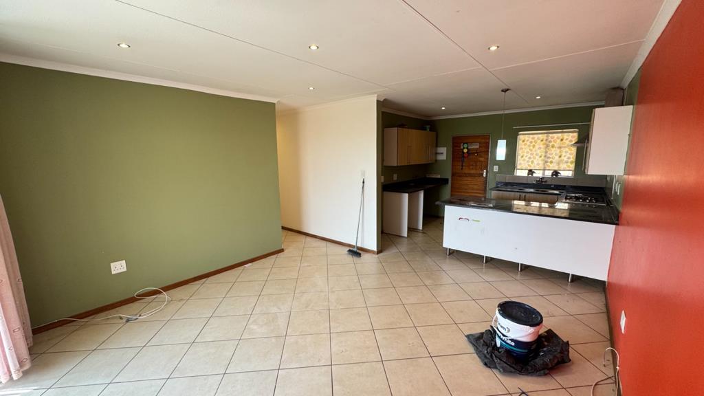 Discover comfortable living in this inviting 3-bedroom, 2-bathroom home available for rent within the secure Mooikloof Ridge estate in Pretoria. This property offers a practical layout designed for modern living, featuring an open-plan lounge, dining area, and kitchen. The kitchen is well-appointed with a modern gas hob, extractor fan, ample granite countertops, light wood cabinetry, a double sink, and a convenient peninsula, perfect for casual dining or meal preparation. Tiled flooring extends throughout the home, ensuring easy maintenance.