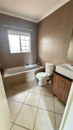 Discover comfortable and secure living in this modern 2-bedroom, 2-bathroom rental property located within the sought-after Mooikloof Ridge Estate in Pretoria, South Africa. This inviting home spans 120 sqm on a 300 sqm erf, offering a well-designed open-plan layout that seamlessly connects the living area with a contemporary kitchen. The kitchen is a highlight, featuring dark granite countertops, light wood-tone cabinetry, a built-in stove, oven, extractor fan, and a convenient breakfast bar, perfect for casual dining.