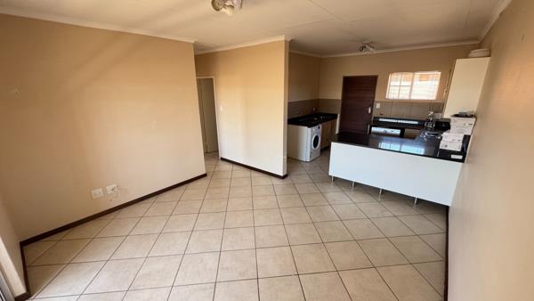 Discover comfortable living in this modern 2-bedroom, 1-bathroom apartment within a sought-after security estate in Mooikloof Ridge, Pretoria. Spanning 80 sqm, this well-appointed unit features an inviting open-plan living area seamlessly connecting to a contemporary kitchen. The kitchen boasts light wood-look upper cabinets, cream lower cabinetry, and sleek black granite countertops, complemented by a built-in stove, oven, double sink, breakfast bar, and dedicated laundry spaces.