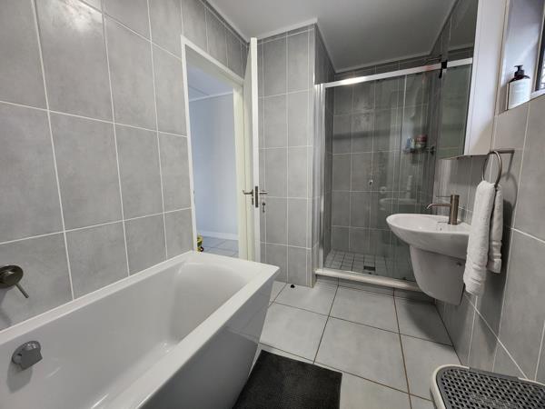 This 3 BEDROOM 2 BATHROOM apartment is situated in the very sought after Greenkloof Eco Estate in Mooikloof smart city. Main Bedroom with En-suite Bathroom: Sunny bedroom with built-in cupboards and an en-suite bathroom featuring a shower, toilet, and basin.
