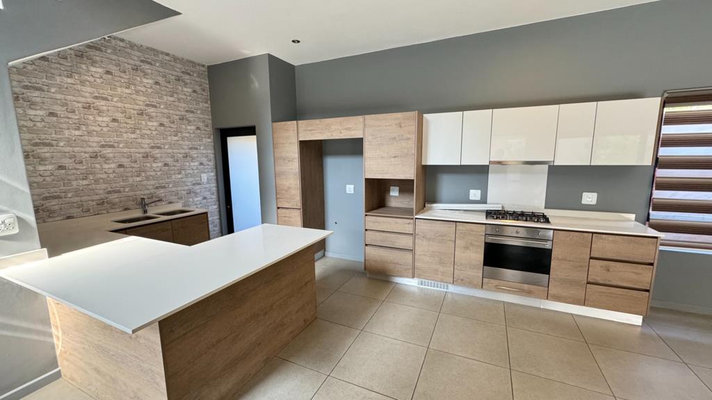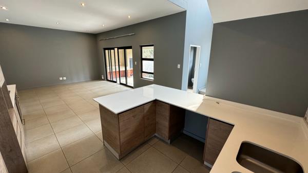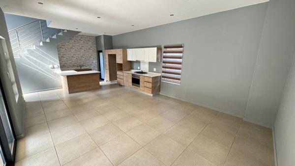 Discover modern living in this inviting 3-bedroom, 2.5-bathroom home available for rent within the prestigious The Hills Game Reserve Estate in Pretoria. Spanning 203 sqm on a 300 sqm erf, this residence offers a well-designed layout. An entrance hall leads into an open-plan living area, seamlessly connecting the lounge, dining room, and a well-appointed kitchen. A guest toilet is also present. Sliding doors open from the living space onto a private patio, extending entertainment options.