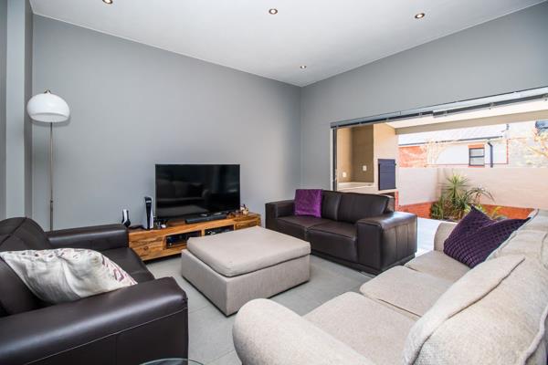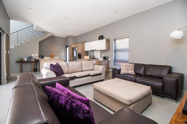 Stack doors lead to a covered patio, perfect for entertaining, complete with a built-in braai. The living areas and pajama lounge are designed with attention to detail.