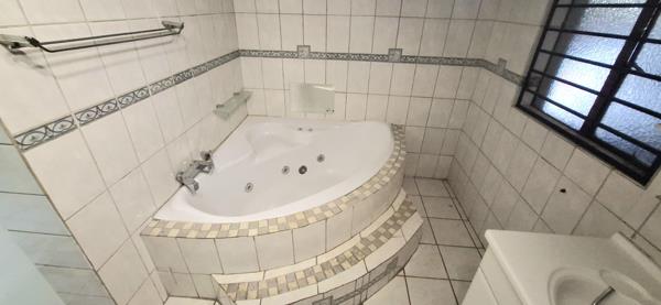 This fully tiled home offers comfort, privacy and convenience, situated near the Coca Cola factory and main roads leading to the city, shops and malls. The property features four bedrooms, each with its own private entrance and security gate. The main bedroom has built in cupboards and an en suite bathroom with a shower, toilet, basin and Jacuzzi bath. The second bedroom includes built in cupboards and easy access to a separate guest bathroom with a toilet and basin. The third bedroom is very spacious with ample built in cupboards and its own en suite bathroom with shower, toilet and basin. The fourth bedroom offers ample space, a small built in cupboard and a private bathroom with shower, toilet and basin. The home includes a large open plan lounge, a spacious kitchen with plenty of cupboards, a small spens and a separate washing area for dishes and laundry. Outside, the property offers a double carport, open parking in front of each room and low maintenance paved areas all around the home. Prepaid electricity is used, and water and sanitation are included. This property is perfect for a large family seeking a modern, secure and spacious home in a convenient location for your kids & pets.