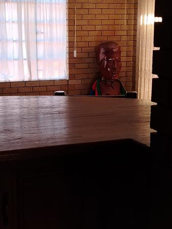 This spacious 5-bedroom rental property offers comfortable living with practical features. The interior boasts durable tiled flooring throughout, complemented by unique exposed brick walls that add character to the living spaces. The layout includes a dedicated lounge, a dining room, and a functional kitchen. A notable feature is the built-in bar area, complete with a wine rack and glass shelving, perfect for entertaining or relaxing after a long day.