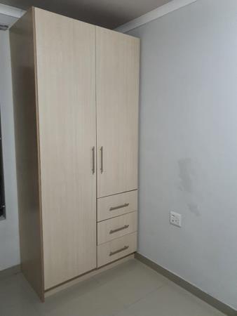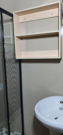 This bachelor offers a delightful and comfortable living space for those seeking a cozy yet modern residence, including the open bedroom spacious to fit a King or queen size bed, a modern kitchen with fitted units and a four plate electric stove, a fitted wall drop, a geyser not shared, a shower, basin and a toilet.