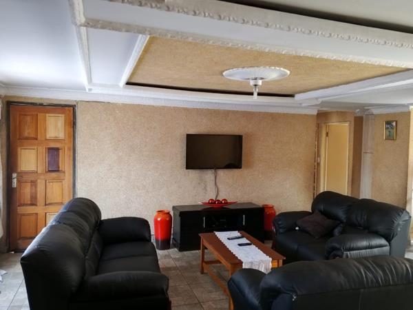 Further enhancing peace of mind, the property is situated within a security estate and features security bars on windows and doors. Parking is well-catered for with a single garage and two additional parking spaces. This home presents a practical and secure rental opportunity.