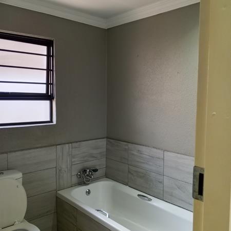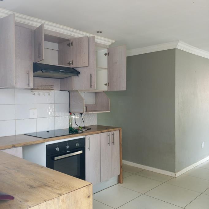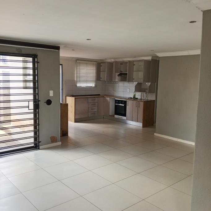 This modern 3-bedroom, 2-bathroom rental property offers comfortable living within a secure estate. The residence features an inviting open-plan layout, seamlessly connecting the living, dining, and kitchen areas. Durable tiled flooring extends throughout, complemented by elegant crown molding and recessed lighting, creating a bright, contemporary atmosphere.