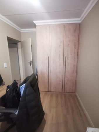 Discover modern living in this inviting 2-bedroom, 1-bathroom apartment located within a secure eco-estate in Kameeldrift East, Pretoria. Spanning 76 square meters, this residence offers a well-designed layout perfect for comfortable living. The interior boasts contemporary finishes, including elegant wood-look laminate flooring and neutral-toned walls, creating a bright and welcoming atmosphere. The spacious lounge area features good natural light and provides direct access to an enclosed balcony, offering a versatile space for dining or relaxation.