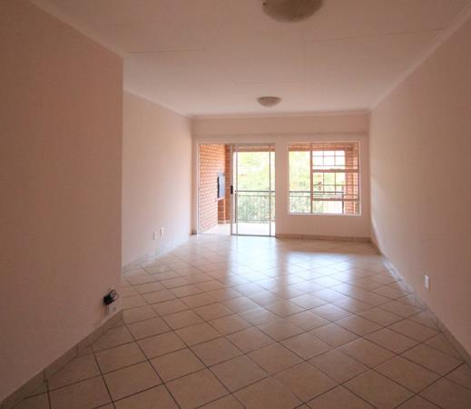 A spacious living room lounge with sliding door that leads onto a covered balcony that as a built-in-braai.