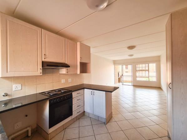 This modern, turnkey 2-bedroom, 2-bathroom unit features an open-plan kitchen, dining, and living area that extends to a covered balcony with a built-in braaiperfect for outdoor enjoyment.