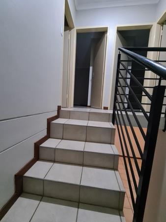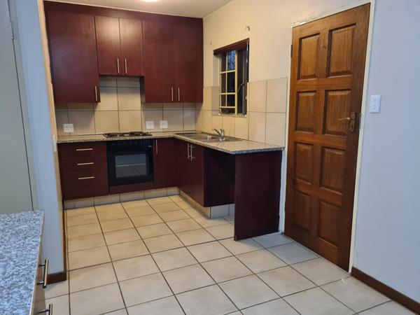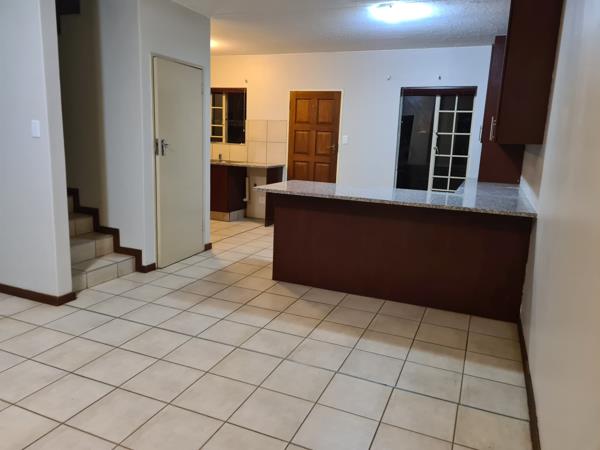 It is a fabulous sectional title with a well-sized garden. 3 Spacious bedrooms with ample cupboards and 2 modern bathrooms main en-suite on the upper level. Downstairs you will find the spacious open plan dining and lounge with sliding doors that opens up to the garden. Gorgeous kitchen with more than enough cupboards as well as a storage. It has a double garage and parking for visitors.