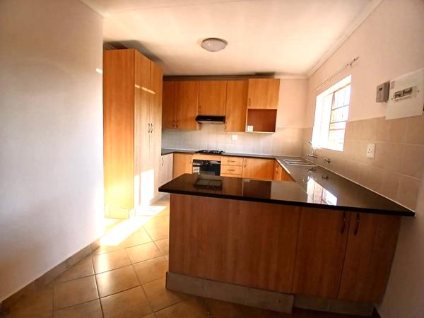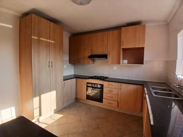 Situated in an access controlled complex, this large 125 sq. meter, 3 Bedroom, 2 Bathroom first floor unit is available from the 1st of december 2025. It is close close to Makro, a new diverse shopping complex, the Wilgers Hospital, schools and other amenities'', as well as the N4 highway. It has a spacious dining room / lounge with a sliding door that leads out to a large covered balcony with a built-in-braai and a view, The open plan kitchen is equipped with generous wood storage cupboards, granite tops, and has space for two under counter appliances and a small breakfast nook.