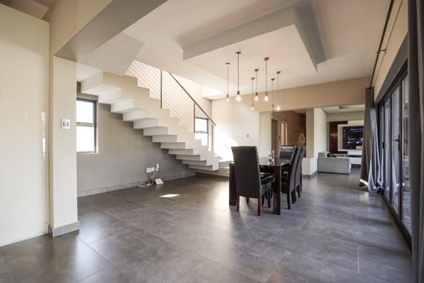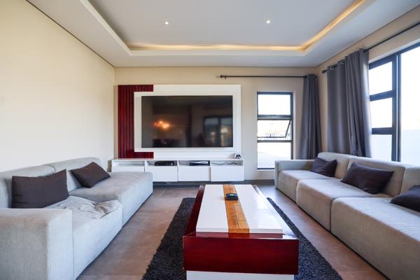 On the upper level you will find a pajama lounge with gas fireplace and the other 3 bedrooms, from which the master suite is crme de la crme, elegant, with walk-in-cupboards, stylish bathroom and loads of space.