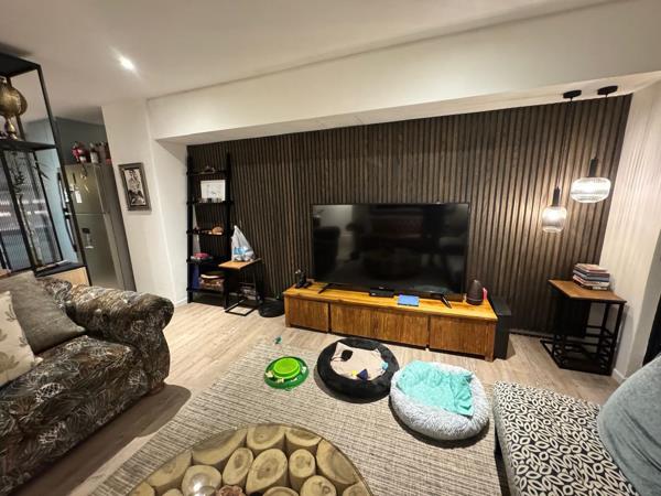 Step outside to a private, low-maintenance garden oasis, complete with soft artificial grass, ambient string lighting, and a layout perfect for entertaining or relaxing. The design makes it ideal for children or cats to play safely, while offering the perfect atmosphere for weekend gatherings or quiet evenings under the stars. Included in the area is a beautiful braai area with large sliding doors.