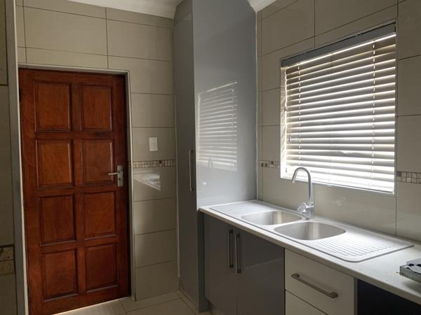 This stunning double-Storey home offers the perfect blend of comfort and modern elegance in a secure estate. The ground floor features an open-plan kitchen with a scullery, a spacious living area, a guest bathroom, and a guest bedroom. Upstairs, youll find two well-sized bedrooms, including the main with an ensuite, and a cozy PJ lounge. Enjoy outdoor relaxation with a private swimming pool and ample parking space in the double garage.