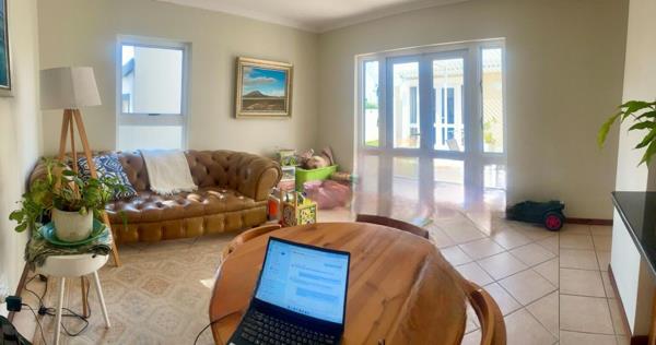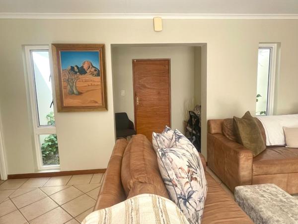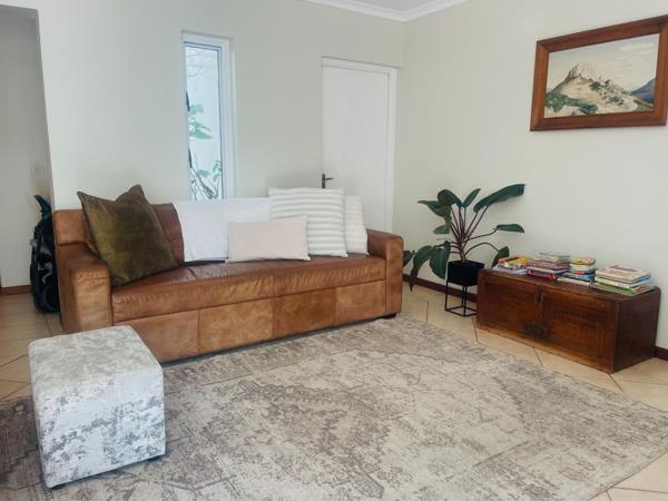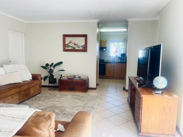 Designed for effortless living, the open-plan lounge and dining area connect seamlessly to a fully equipped stylish kitchen and well-designed scullery area. The spacious main bedroom features a full en-suite bathroom, while the additional bedrooms are tastefully appointed and share a well-sized second full bathroom. Ample storage space is available in the stylish floor-to-ceiling cupboards lining the passage.