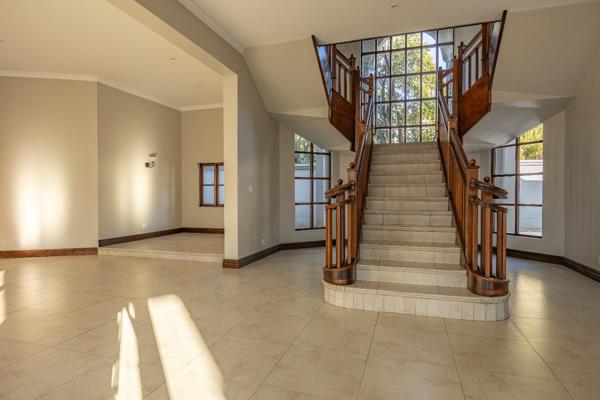 This expansive and elegant home in the prestigious Silver Lakes Golf Estate is available for immediate occupation and offers an exceptional lifestyle for the discerning tenant. The entrance hall leads into a versatile space ideal as a study or guest bedroom, flowing into a spacious dining area perfect for family meals. The ground floor also features a guest bathroom with a shower, a wine cellar, and a generous living room with two fireplaces for year-round comfort. A large, well-equipped kitchen with a separate scullery caters effortlessly to all your culinary needs, complemented by an additional downstairs bedroom.