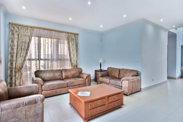 This fully furnished 740m residence offers a perfect blend of luxury, functionality, and space. Designed for both comfort and style, the home features an expansive open-plan layout with multiple living and dining areas, stack doors, air-conditioning, and a cozy fireplace, all flowing seamlessly to the heated swimming pool and entertainment areas. A sunroom with its own shower and toilet, a guest toilet, a large study with storeroom, staff quarters, and three automated garages add to the convenience. A 5kVA inverter ensures uninterrupted living, making this home practical as well as impressive.