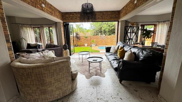 Discover an unparalleled lifestyle within this magnificent four-bedroom, 3.5-bathroom residence, perfectly situated in the esteemed Silver Lakes Golf Estate, Pretoria. Spanning an impressive 380 sqm, this two-story home is a testament to sophisticated design and expansive living. The interiors boast an open-plan layout, seamlessly connecting two distinct lounges and a dedicated dining room, all bathed in an abundance of natural light streaming through numerous large windows and elegant sliding doors. Exposed brick accents lend a touch of character, while modern finishes and air conditioning ensure year-round comfort. A well-appointed kitchen with a convenient pantry caters to culinary enthusiasts, making entertaining effortless.