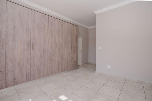 This well-sized Simplex boasts 3 spacious bedrooms and 2 bathrooms of which the main bedroom enjoys an en-suite-bathroom. 2 Big flowing open plan living Modern kitchen with ample cupboards and a scullery. Private garden and a double garage.