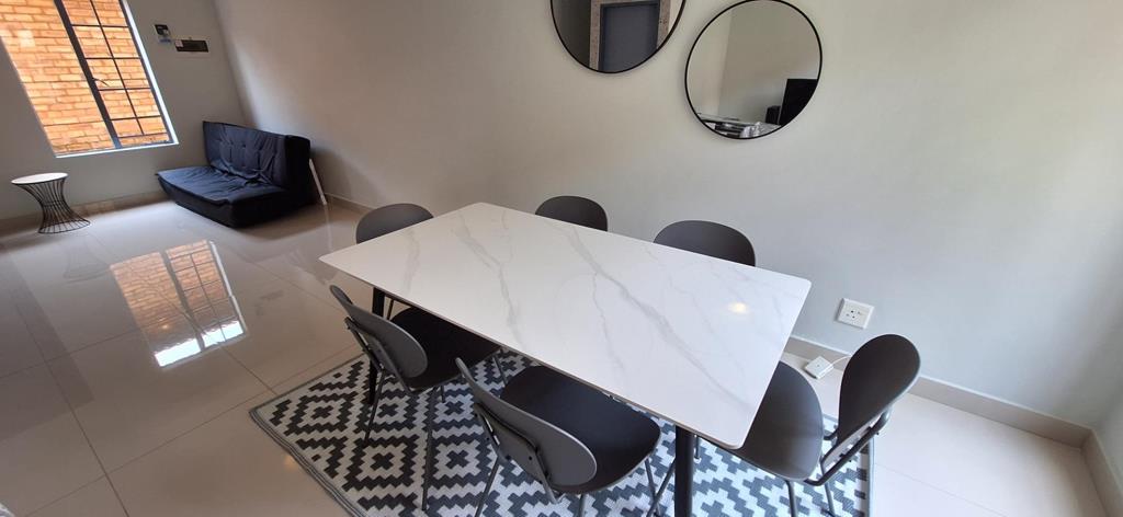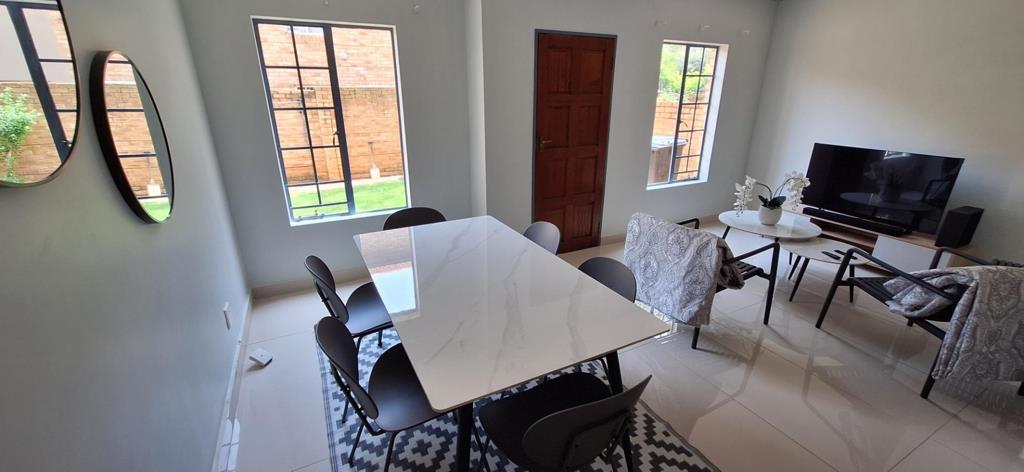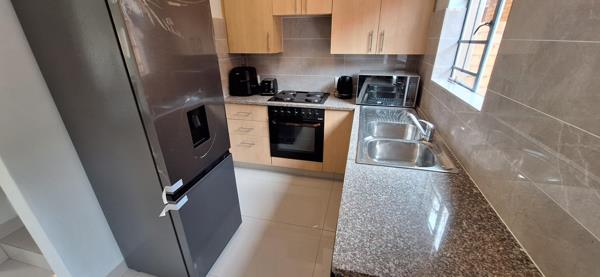 Exquisite 3-bedroom duplex. Newly renovated, painted and tiled. It has a living area downstairs that can fit a dining table and lounge set. The kitchen is open plan.There is space for a double door fridge and under counter washing machine. There is a convenient storeroom under the stairs. Upstairs there are 3 bedrooms and 2 bathrooms. One bathroom has a shower and the other one a bath. There are 2 garages and a small garden.Oukraal Estate is situated opposite a Curo school and within close proximity of shopping centers. Up to two small dogs may be allowed with permission. No cats. A good credit record will be important.