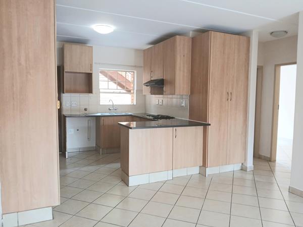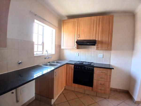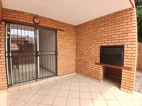 Situated in an access controlled complex, this large 98 sq. meter, 2 Bedroom, 2 Bathroom ground floor unit is available from the 1st of April 2026. Situated close to Makro, a new diverse shopping complex, the Wilgers Hospital, schools and other amenities'', as well as the N4 highway. It has a spacious dining room lounge with a sliding door that leads out to a covered patio with a built-in-braai and a private walled in garden. The open plan kitchen is equipped with generous wood storage cupboards, granite tops, and has space for two under counter appliances and a small breakfast nook.