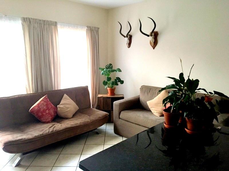 The large main bedroom has ample built in cupboards and an an-suite bathroom complete with toilet, basin and shower. The second bedroom is serviced by a full bathroom. A lockup single garage and additional Parking complete the picture. Water is included, and Fibre and prepaid electricity is available. NOTE: Only one small breed dog allowed. No cats. A swimming pool is available to cool off on hot days as well as a kids play area .