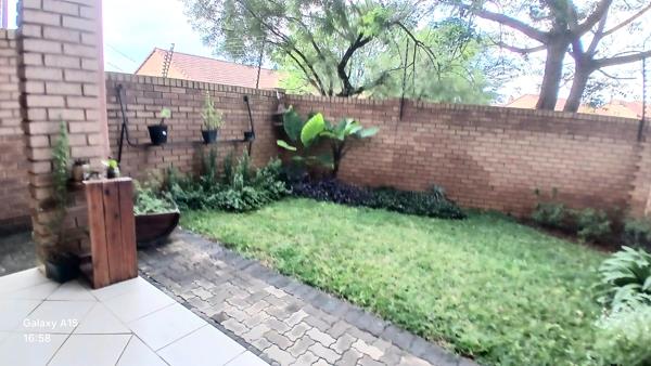 Load shedding free area - Situated in an access-controlled complex, this large 145 sq. meter, 2 Bedroom, 2 Bathroom duplex is available from the 1st of May 2026. Situated close to Makro, the new Lintons diverse shopping complex, the Wilgers Hospital, schools and other amenities, as well as the N4 highway. It has a spacious dining room lounge with a sliding door that leads out to a covered patio with a built-in-braai and a private walled in garden. The open plan kitchen is equipped with generous wood storage cupboards, granite tops, and has space for two under counter appliances and a small breakfast nook.