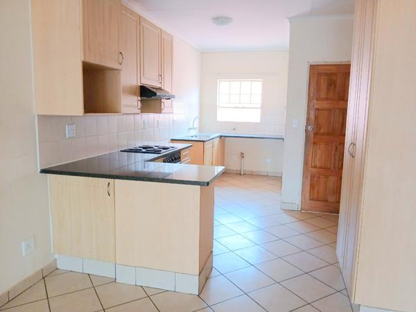 This 105 sq meter 2 bedroom, 2 bathroom ground floor unit is situated in a 24 hour guarded security complex in Silver Lakes, in close proximity to shopping centres, churches, schools, and taxibus services, is available as from the 1st of April 2026 onwards. The loungedining room area leads out onto a patio with a built-in braai, and a walled in private garden. The Kitchen is equipped with granite tops, ample cupboard space, as well as provision for two under counter appliances.