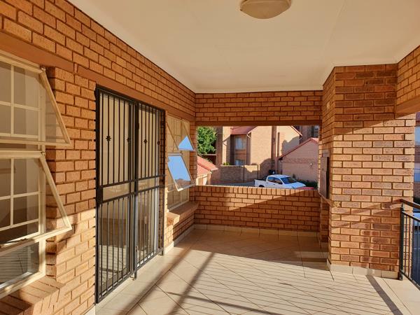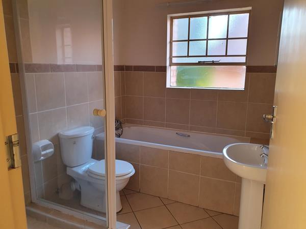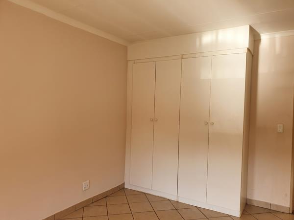 Available immediately.Loose standing unit, no one above or below you. Very exclusive. Big open-plan lounge dining room. 24hour security. Close to schools and shopping centres. Communal swimming pool. Braai area and playground.