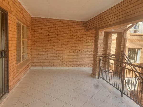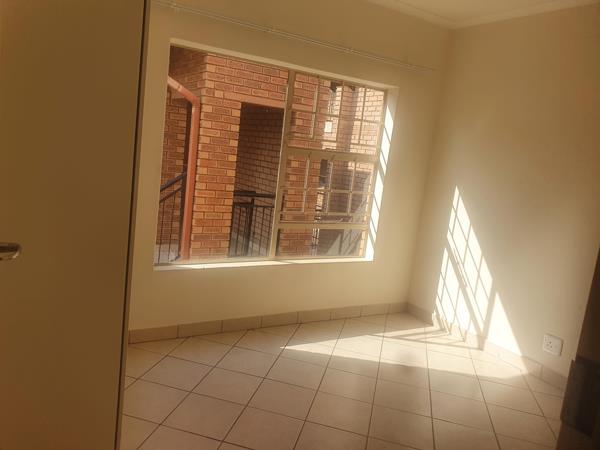 2 beds, 1 full bathroom, massive balcony with a built in braai stand. Situated on top of the garages with no one above the unit. Electricity pre-paid, water included in the rent, close to Silver lakes Makro, Hazeldean shopping centre and Linton corner complex. 24 hour security. Fibre ready.
