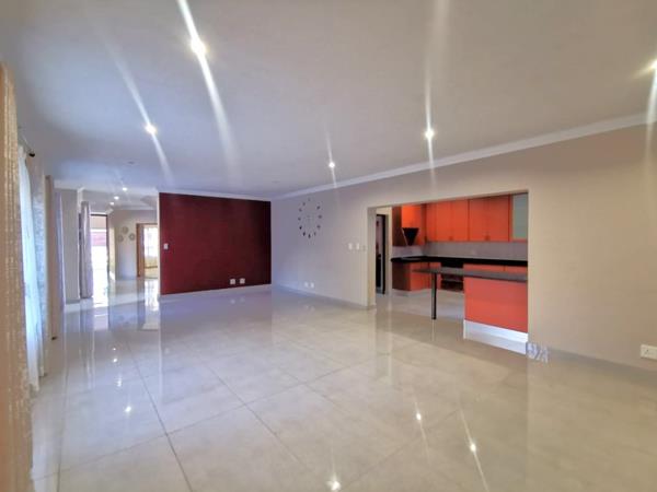 As you step inside, the vast open-plan living and dining area unfolds before you, creating a sense of openness and connection. The spacious and well-designed kitchen, boasting ample cupboard space, a convenient breakfast nook, and a separate scullery and laundry area for added convenience.