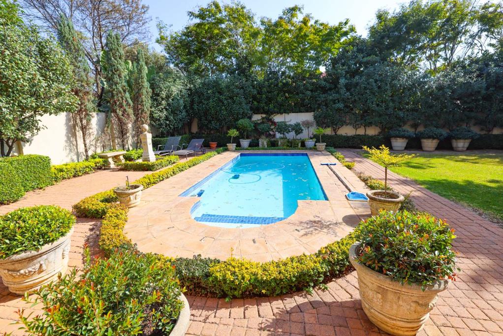 In a quiet location, the fulllength upper level overlooks the landscaped back garden and a sparkling oversized swimming pool. On the ground floor, a covered veranda is accessed through sliding wooden doors from all rearfacing rooms, opening onto a backyard bordered by mature trees and manicured plantings. The tranquil setting ensures total privacy and a lifestyle of comfort and elegance.