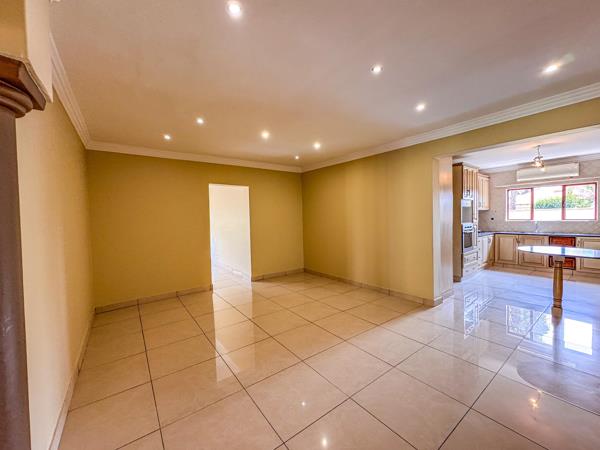 Step into an inviting open-plan layout designed for both comfort and entertaining. The welcoming living room flows effortlessly into two lounges, a formal dining area, and a well-appointed kitchen at the heart of the home. The kitchen offers ample cupboard space and a separate scullery, keeping the living areas neat and tidy.