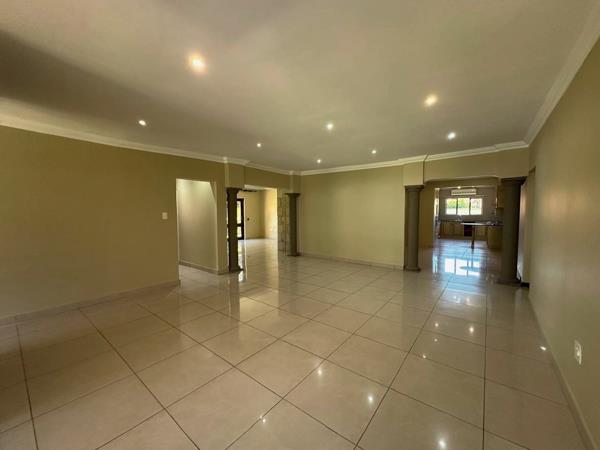 This spacious 3-bedroom, 2.5-bathroom home is available to rent in the highly sought-after Willow Acres Estate, Pretoria. Offering generous living space on a 797 sqm stand, the home features a bright open-plan layout with neutral finishes, tiled floors, recessed lighting, and elegant crown moulding. A striking floor-to-ceiling tiled fireplace creates a warm focal point in the living area, perfect for cozy evenings and relaxed family living.
