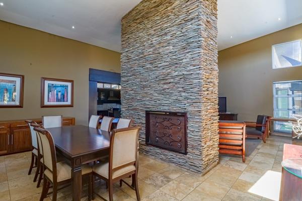 The inviting entrance leads into expansive, open-plan living areas where the lounge, dining room, and kitchen flow effortlessly together. For those who love to entertain, sliding doors transition to a spacious, enclosed patio featuring a built-in braai. Large stacking doors further extend this space to the manicured garden and sparkling pool, creating a perfect setting for summer gatherings.