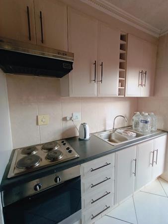 Discover this inviting 2-bedroom, 1-bathroom residential rental property located in a vibrant suburban area. Spanning a comfortable 180 sqm of floor space on a 350 sqm erf, this home offers a practical and secure living environment. The interior boasts a well-appointed, modern kitchen featuring sleek white cabinetry, dark countertops, an integrated hob, oven, and extractor fan, complemented by a double sink and a convenient built-in wine rack. Tiled flooring extends throughout the living spaces, ensuring easy maintenance and a clean aesthetic.