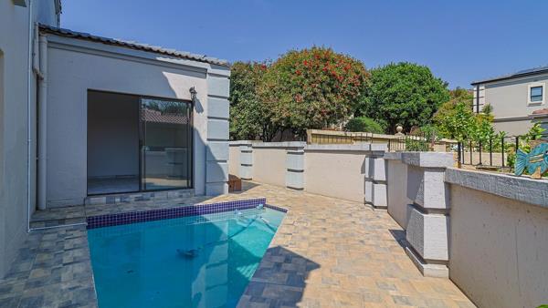 Chic and Serene Modern Cluster Home with Solar and Borehole! Perfectly positioned in a quiet cul-de-sac, this beautifully renovated 3-bedroom, 2.5-bathroom cluster home offers modern elegance and effortless living. Designed with both comfort and style in mind, this home invites you to enjoy tranquil living in a truly move-in-ready space. The light-filled open-plan living areas flow seamlessly onto a generous covered patio, creating the perfect indoor-outdoor connection. Overlooking the sparkling splash pool and landscaped garden, this space is ideal for relaxed family moments or entertaining guests.