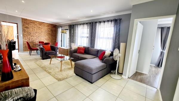 The 3 spacious bedrooms has ample cupboard space, 2 modern full bathrooms, open plan kitchen,