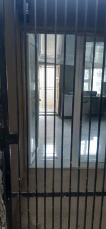 Security is a priority, with robust metal security gates at entry points and a controlled access gate ensuring peace of mind. The property includes a dedicated parking bay for convenience. Outside, a garden area and paved sections offer a private outdoor retreat, perfect for relaxation. This home is ideal for individuals or small families seeking a customizable living space in a secure environment.