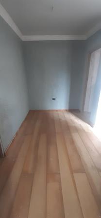 The interior boasts a practical layout with durable tiled floors and, in some areas, a reflective ceiling complemented by elegant crown molding. While certain spaces, including the bathroom, are awaiting their final cosmetic finishes, essential fixtures like a built-in tiled bathtub and toilet are in place, offering a blank canvas for personalization. Other rooms feature wooden plank flooring, providing a warm aesthetic that can be further enhanced.