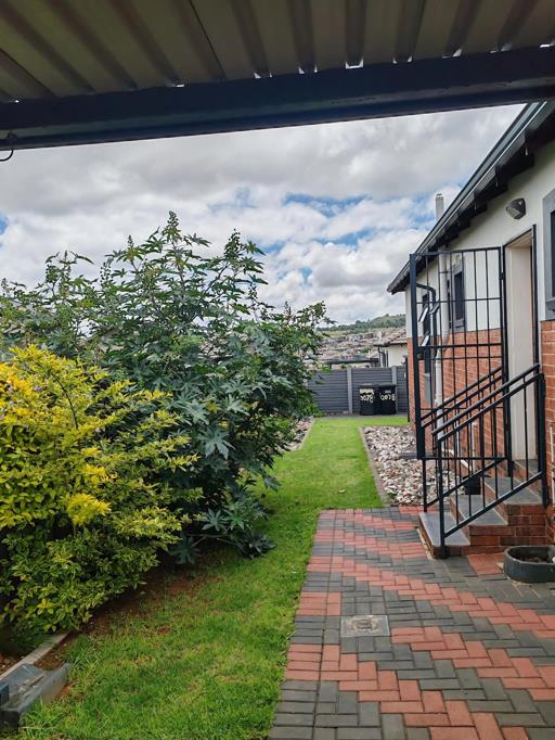 Each bedroom has built-in cupboards. The kitchen has built-in cupboards with a gas stove. Plumbing already installed in the kitchen for your smart fridge to dispense your ice and water. The geyser is a solar-powered geyser which will alleviate your electricity expenditure. Washing machine and dishwasher plumbing is installed and ready for your use. The yard is beautifully designed and manicured with a designated landscaper managing it at no cost to you. The house has a double car carport with security gate and wall. Security system is installed, monthly subscription excluded from the rent. There is fibre if you would like to take it over.