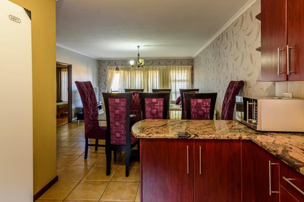 Open plan loungediningKitchen area with space for 2 under-counter appliances and sufficient space for a double door fridge if required.